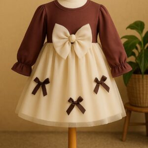 Pretty Beige and Brown Frock Dress
